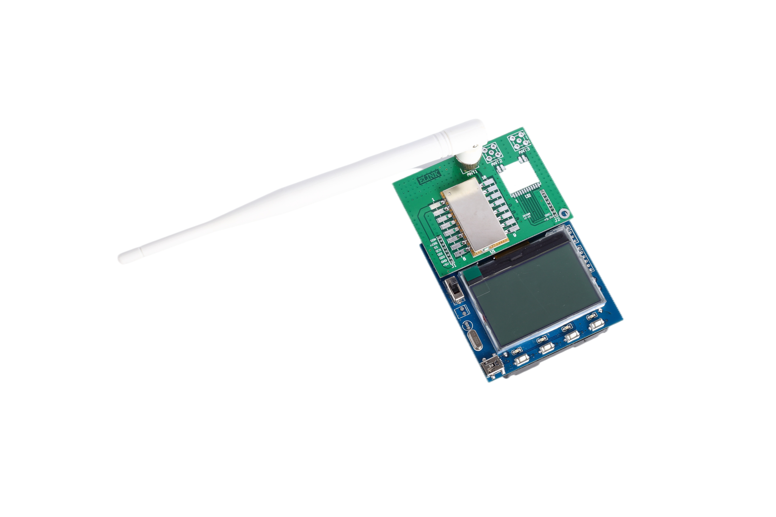 圖為elink_demov11 開發(fā)板,開發(fā)板提供3 種電源供電方式,外接直流電源、USB口供電、AA電池供電。并有電源指示燈提示??蛇x擇半雙工模式,單收發(fā)模式,測試時可顯示RSSI無線接收信號值,并計算出丟包率等。