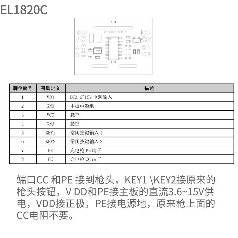 EL1820C 是一款用于新能源車充電槍的無(wú)線控制模塊,可解鎖特斯拉車型 的充電蓋板。 EL1820C 可用于解鎖特斯拉電動(dòng)車的充電蓋板,使用于各種充電設(shè)備,可 選充電功率,無(wú)線遙控解鎖充電蓋板。